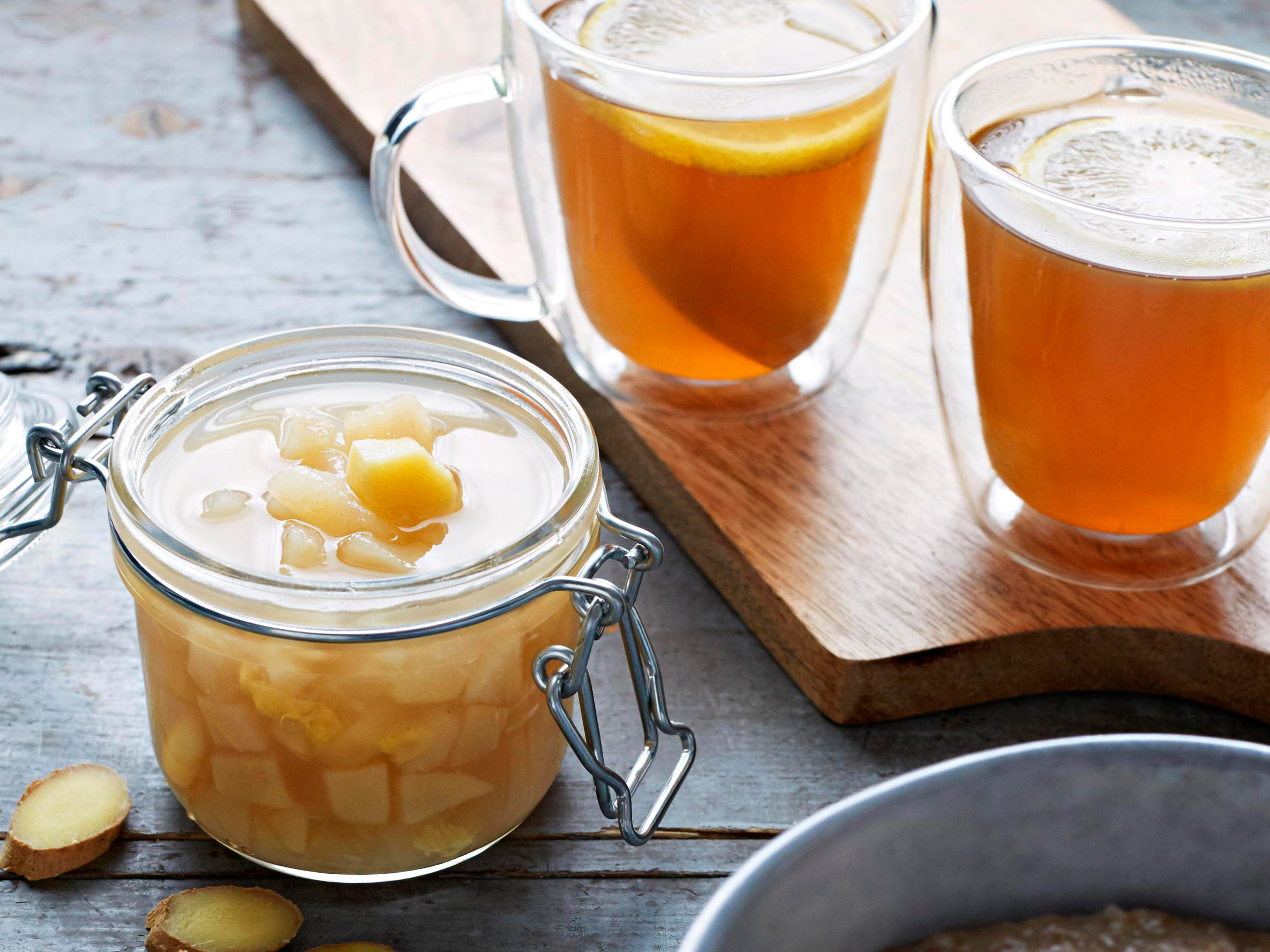 Jalkoja särkee ja turvottaa? Tuoreesta inkivääristä veteen uutettu juoma vauhdittaa nesteen poistumista kehosta. Kun turvotus laskee, kolotuskin saattaa helpottaa.
