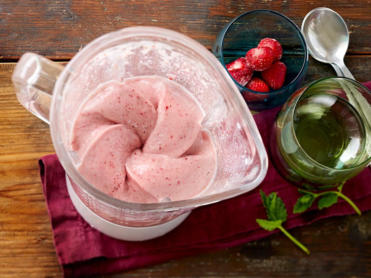 Smoothien lisäksi pakastetut hedelmät sopivat myös vähän tervellisempään kotitekoiseen pehmikseen.