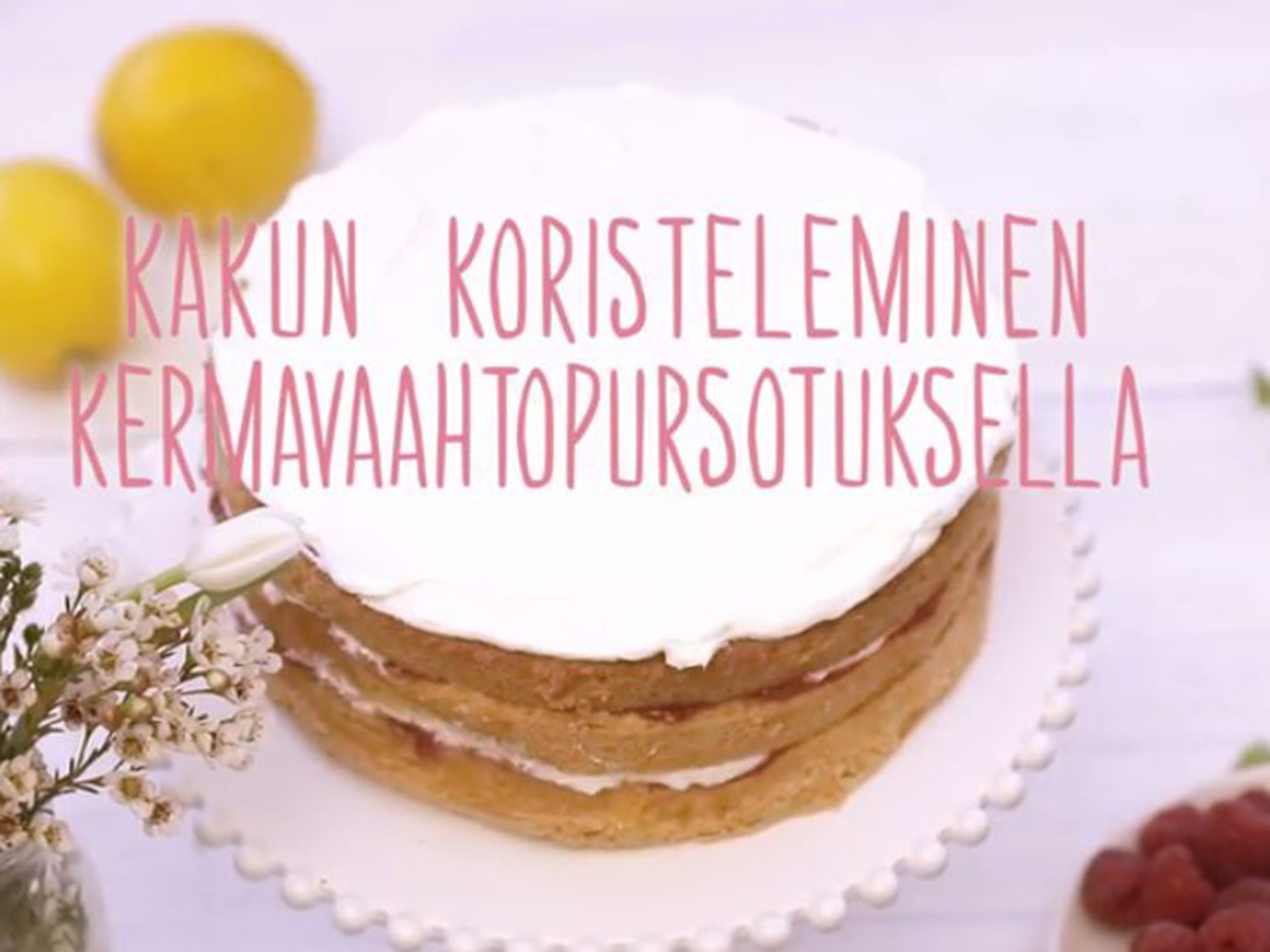 Täytekakun kruunaa kermapursotus. Katso kolme erilaista mallia pursottamiseen.