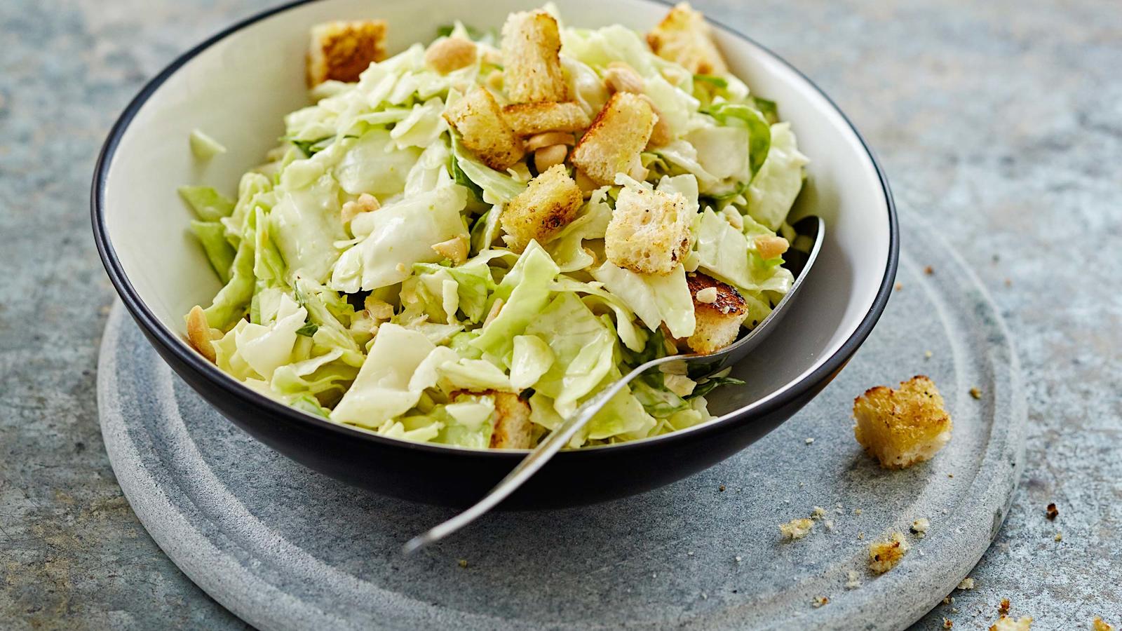 Caesarsalaatti on yksi suomalaisten suosikkisalaateista. Alkukesän kevyt ja ilmava varhaiskaali sopii täydellisesti salaatinlehtien tilalle. Kaalissa on runsaasti vitamiineja ja kivennäisaineita, joten siksikin vaihto kannattaa. Tee kaalicaesaria iso kulhollinen grilliruoan kylkeen.