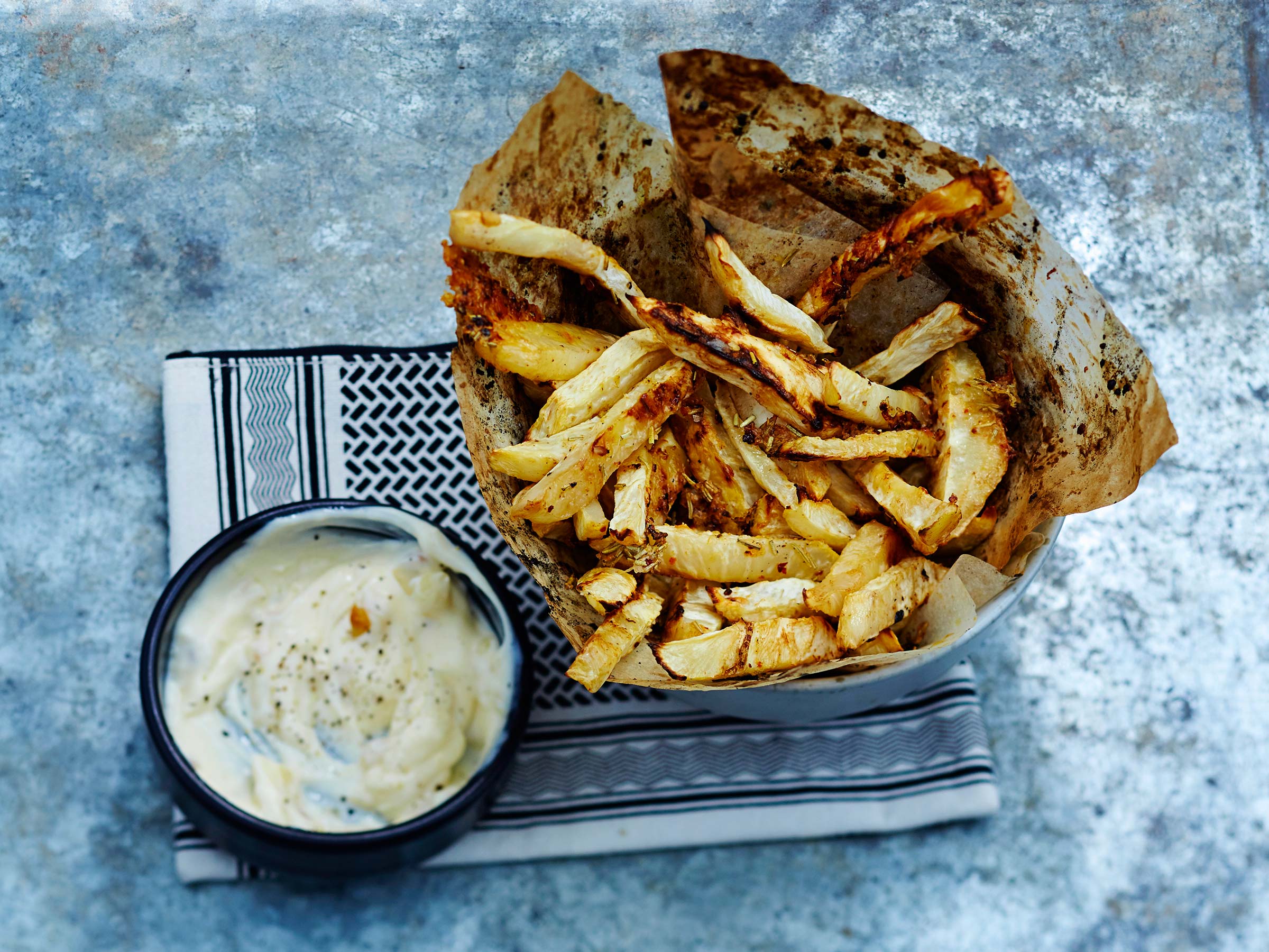 Kokeile trendikkäitä halloumiranskalaisia tai paista ranskikset kasviksista. Napostele raikkaiden dippien kera!