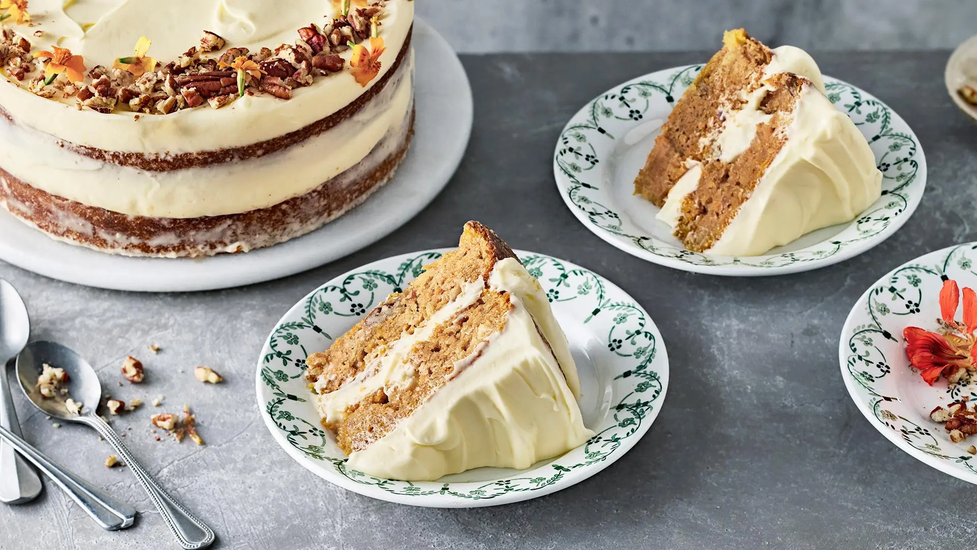 Kukapa ei tykkäisi porkkanakakusta! Mehevässä kakkupohjassa on porkkanaa, fariinisokeria ja mausteita. Kakku täytetään ja kuorrutetaan makealla tuorejuustoseoksella.