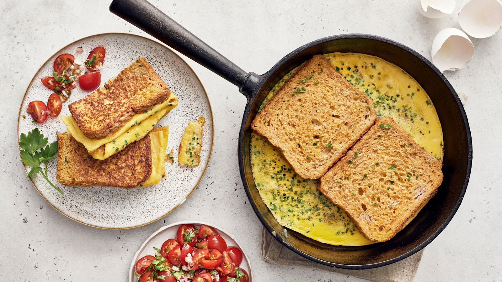 Laita leivän päälle paistettua kananmunaa tai munakokkelia, jonka voit maustaa haluamallasi tavalla. Kokeile myös muutaman vuoden takaista kikkaa, jossa munakas paistetaan suoraan leivän väliin. Katso valmistus videolta!