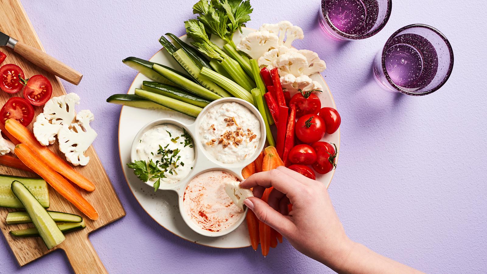 Jääkaappiin valmiiksi pilkotut kasvikset innostavat valitsemaan terveellisiä aamu-, ilta- ja välipaloja. Pese ja pilko valmiiksi rasioihin porkkanaa, kurkkua, pikkutomaatteja, ananasta, kukkakaalia, appelsiinia, viinirypäleitä ja melonia. Dippi tuo kasvisten naposteluun uutta makua.