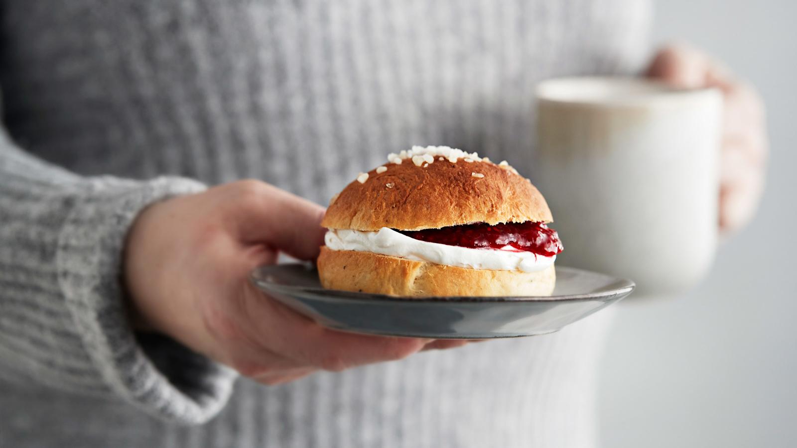 Jos kinuski ja suklaa on mieleesi, vaihda hillo Biscoff-keksilevitteeseen tai hasselpähkinä-suklaalevitteeseen eli vaikkapa Nutellaan. Voit maustaa niillä myös pullaan tulevan kermavaahdon vatkaamalla lusikallisen levitettä vaahdon sekaan. Jos haluat tosi överin lopputuloksen, kuorruta levitteellä myös pullan kansi. Levitettä kannattaa tällöin pehmentää ensin hetki mikrossa, jolloin pullan kannen voi dipata levitteeseen.