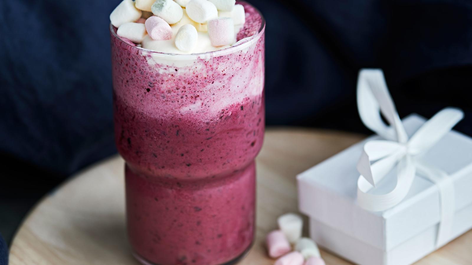 Poreileva jogurttinen juoma on versio hauskasta jäätelösoodasta. Kohmeisista mustikoista ja vaniljajogurtista surautetaan juoma, johon sekoitetaan sitruunan makuista virvoitusjuomaa. Voit valita virvoitusjuomasta sokerittoman tai sokerillisen vaihtoehdon makusi mukaan. Koristele pirtelö kermavaahdolla ja suloisilla minivaahtokarkeilla. Mustikkajogurttisooda sopii sekä arjen herkutteluun että juhlaan!