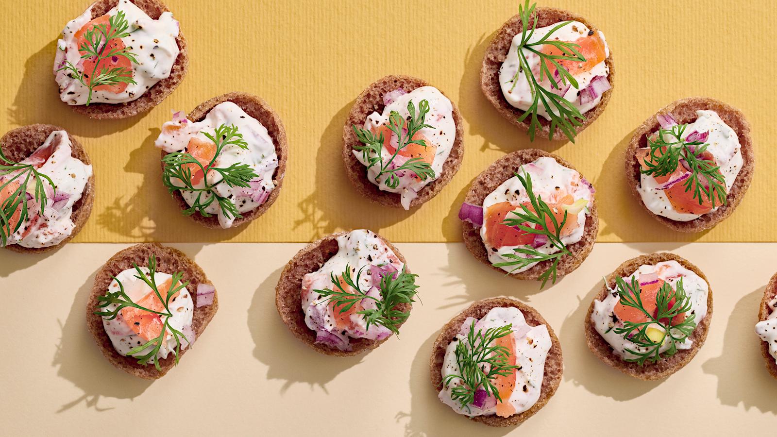 Ruisnapeista tarjoiltu lohimousse on herkullinen suupala. Mousse on oiva pari myös varhaisperunoiden kanssa.