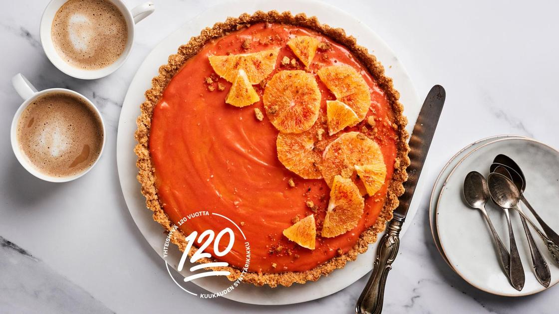 Yhteishyvä täyttää 120! Juhlan kunniaksi hemmottelemme lukijoita joka kuukausi sesonkiin sopivalla kakkureseptillä. Tässä tammikuun kakku: veriappelsiinipiiras.