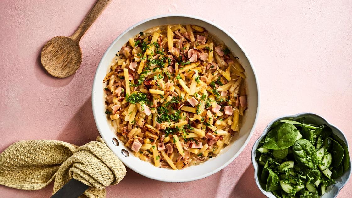 Tiesitkö, että monelle maistuvan kinkkukiusauksen voi tehdä pikavauhtia pannulla? Peruna-sipulisekoituksesta ja kinkusta tehty kiusaus saa mehevyyttä maustetusta ruokakermasta – kokeile vaikkapa savujuustolla maustettua versiota.