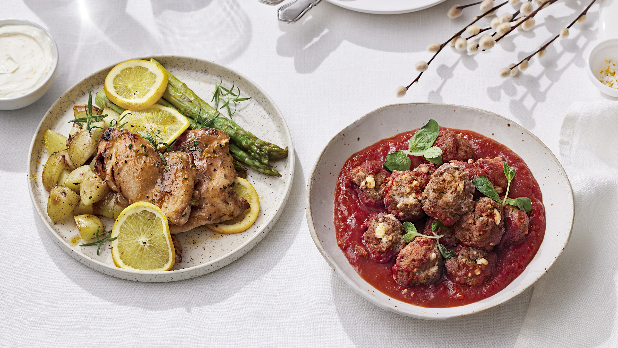 Tomaattiset ja runsaasti makua sisältävät karitsapyörykät maistuvat raikkaiden ja yrttisten lisukkeiden kanssa, joiden reseptit löydät tästä linkistä.