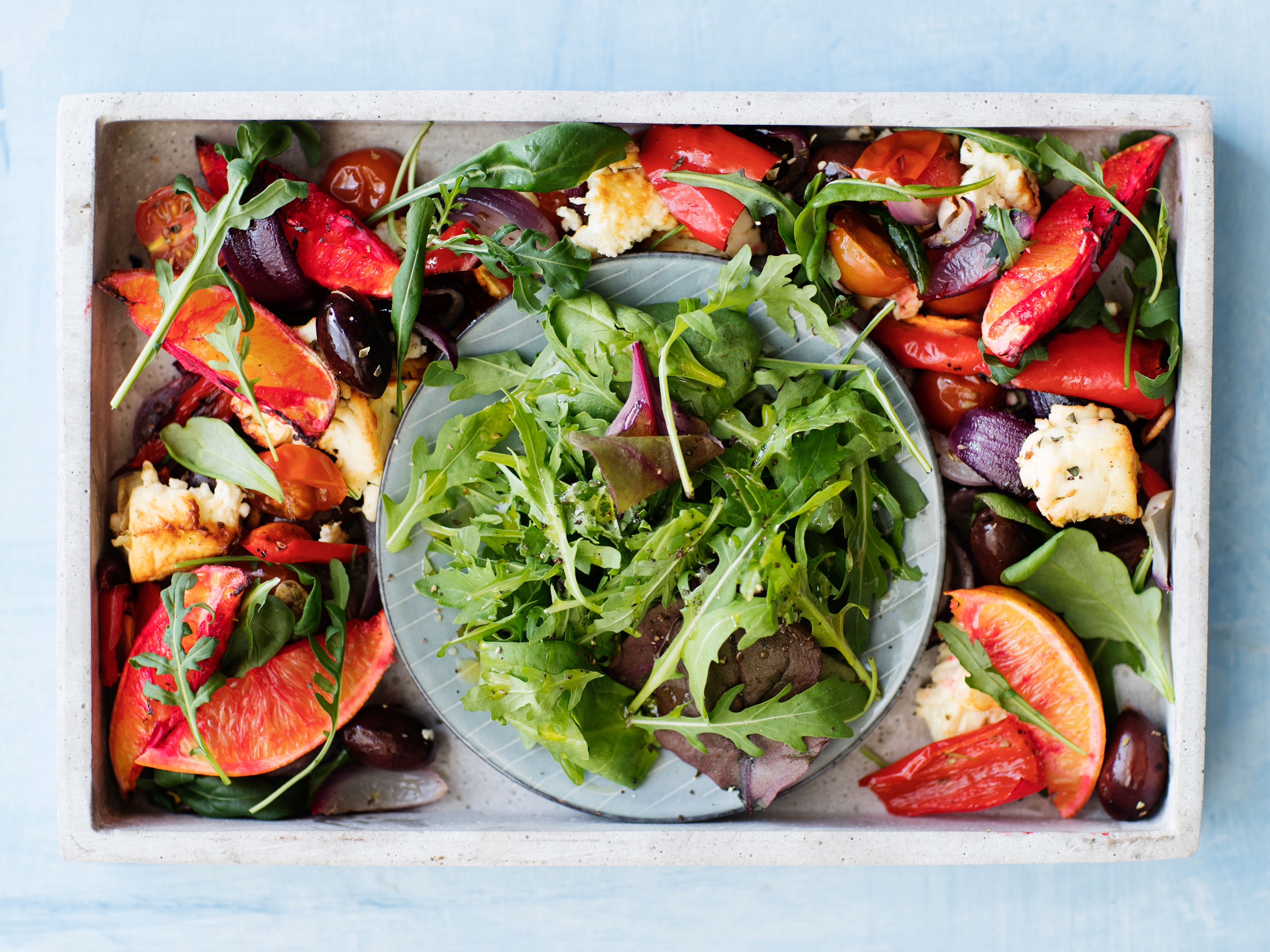Lämmin veriappelsiini-fetasalaatti