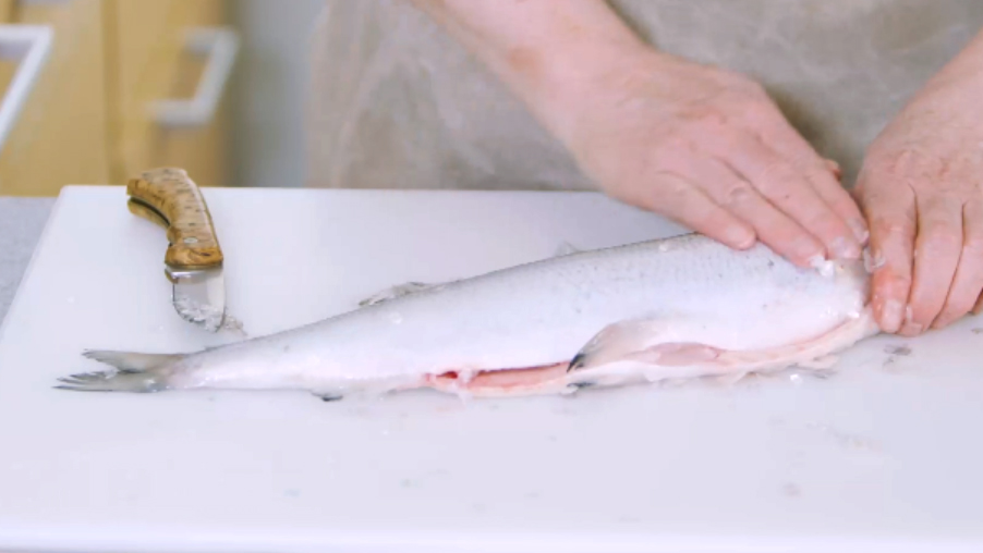 Katso videolta, kuinka siika suomustetaan eli siitä poistetaan suomut.