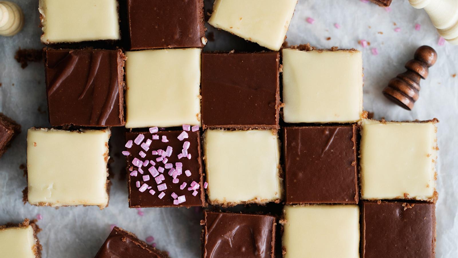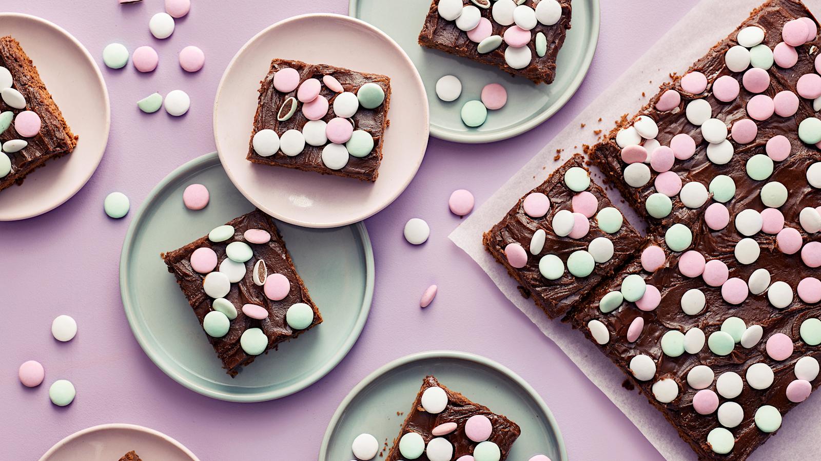 Mokkapaloista saa kätevästi suklaanystävän lempiherkun. Ripota ranskanpastilleja mokkapalataikinaan ja käytä niitä myös koristeluun. Pastillit tuovat leivonnaiseen kivaa rousketta ja piparminttuista makua. Nämä mokkapalat maistuvat myös vegaaneille, sillä ne valmistuvat ilman munaa ja maitoa. Jos kaipaat supersuklaista makua, kokeile tumma- ja valkosuklaakuorrutteella viimeisteltyjä mokkapaloja.
