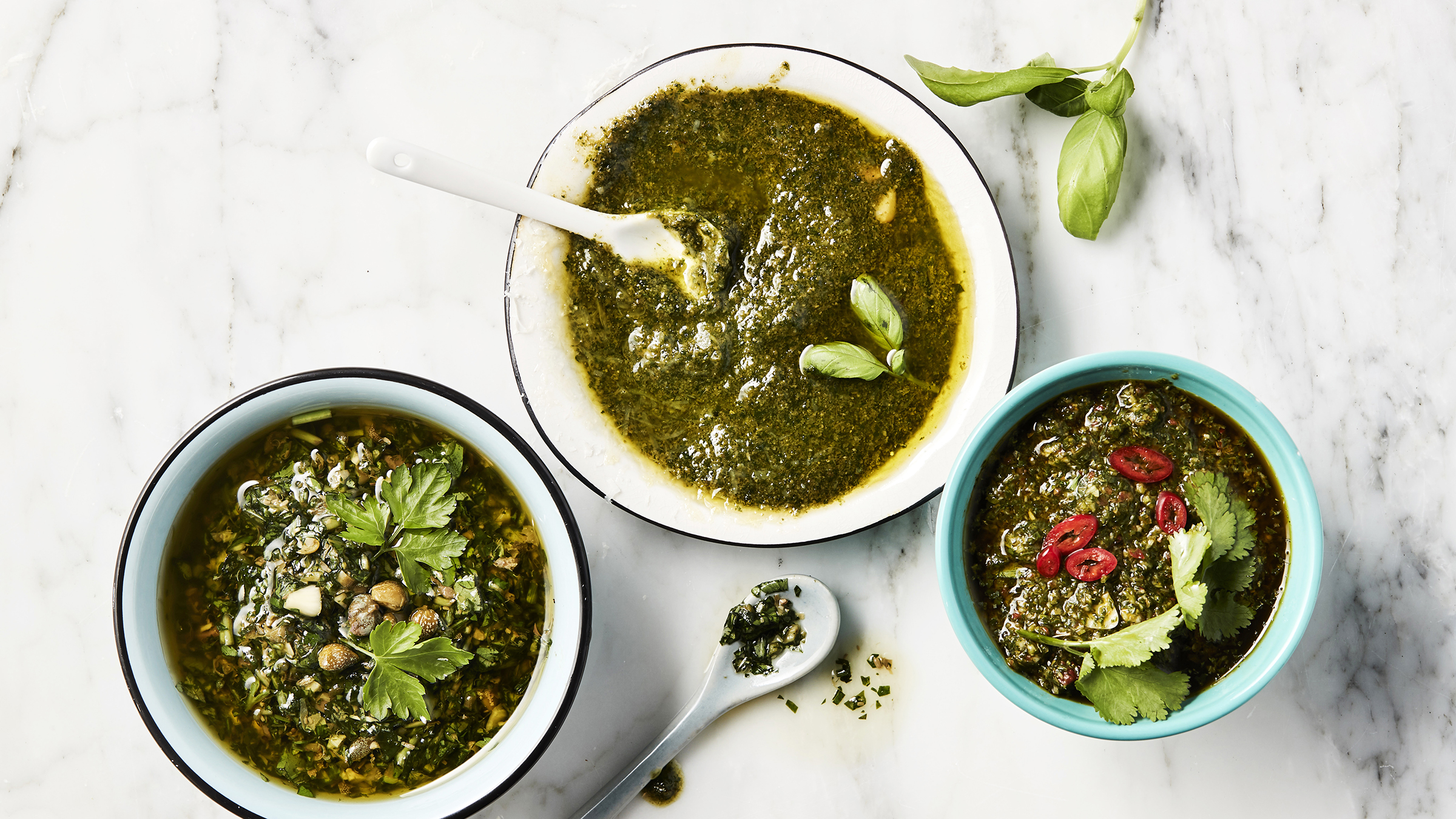 Aito ja alkuperäinen pesto tehdään basilikasta, mutta samantapaisen simppelin yrttikastikkeen voi surauttaa myös esimerkiksi korianterista, lehtikaalista tai tillistä.