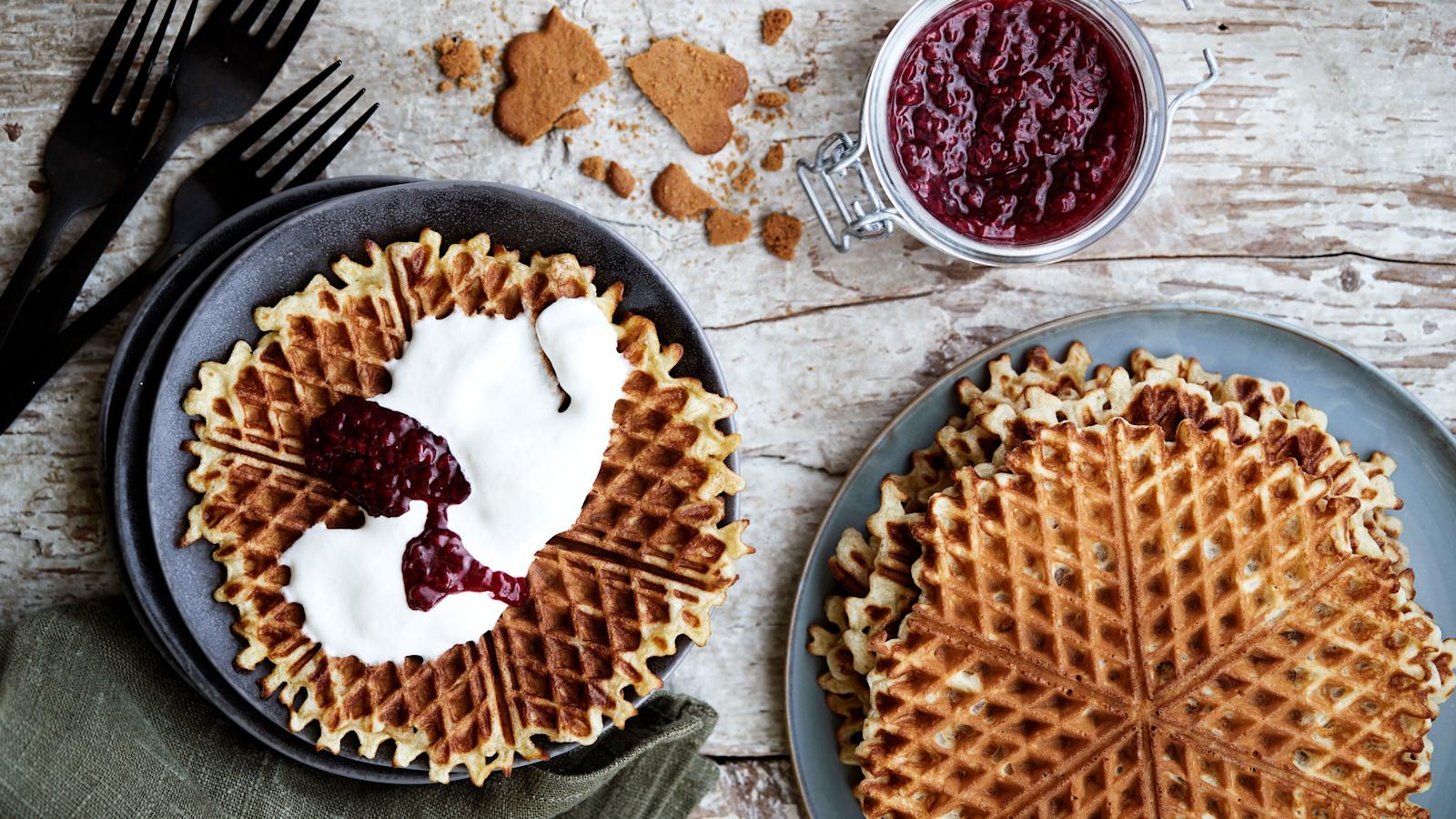 Uudenlaisten vohvelirautareseptien lisäksi kannattaa kokeilla myös erilaisia perusvohveleiden variaatioita. Runeberginpäivän odotuksen voi aloittaa kardemummalla ja piparkakuilla maustetuilla vohveleilla, jotka tarjotaan tietenkin vadelmahillon kanssa.