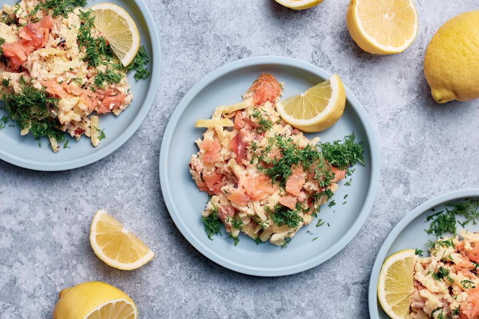 Valmista kiusauksen pikaversio uunin sijaan pannulla, jossa ruoka kypsyy reilussa vartissa. Kylmäsavulohi, sitruuna ja tilli antavat kiusaukselle raikkaan maun.