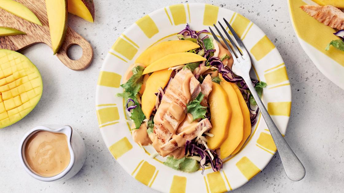 Nopea kanasalaatti sopii kiireiseenkin päivään, sillä sen voi valmistaa vain muutamasta aineksesta: salaattisekoituksesta, broilerista ja makeasta mangosta.